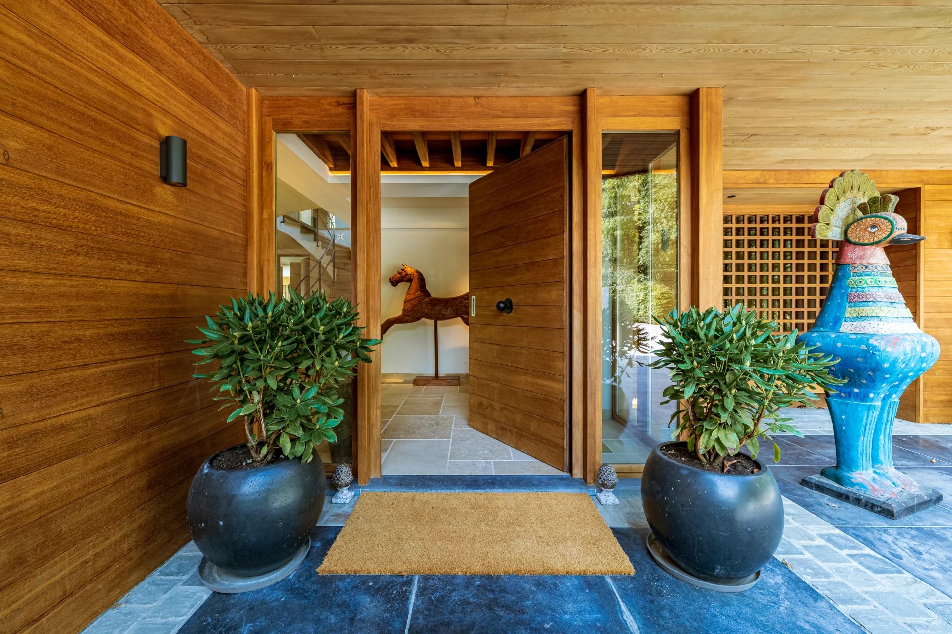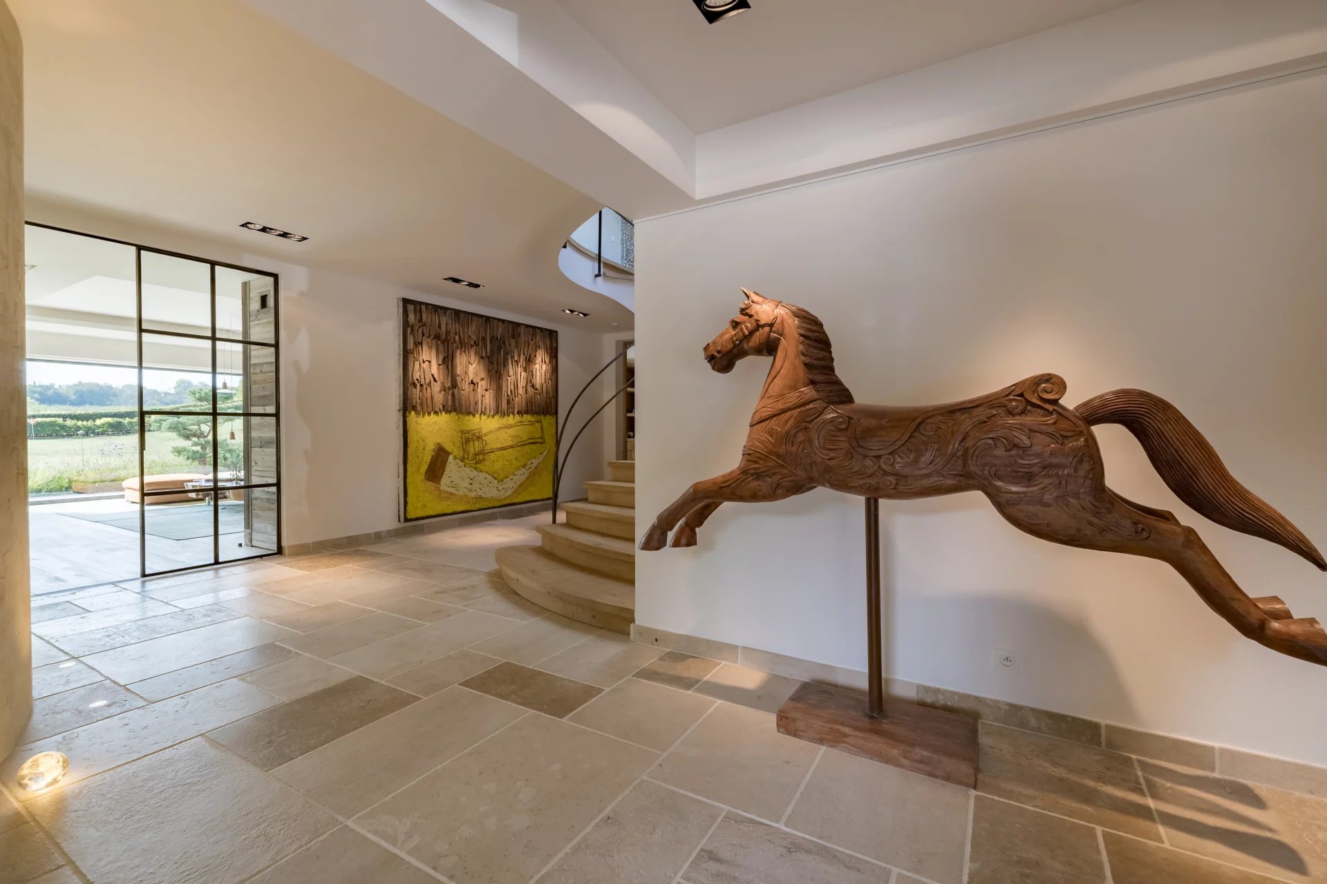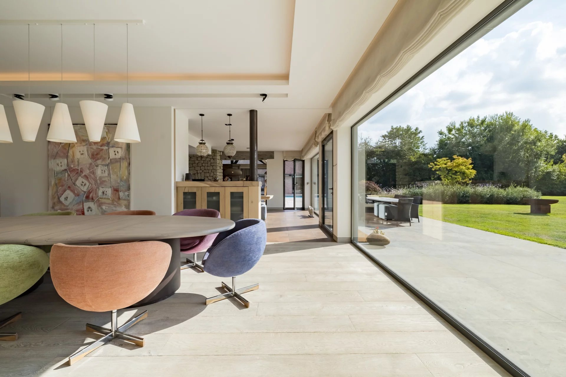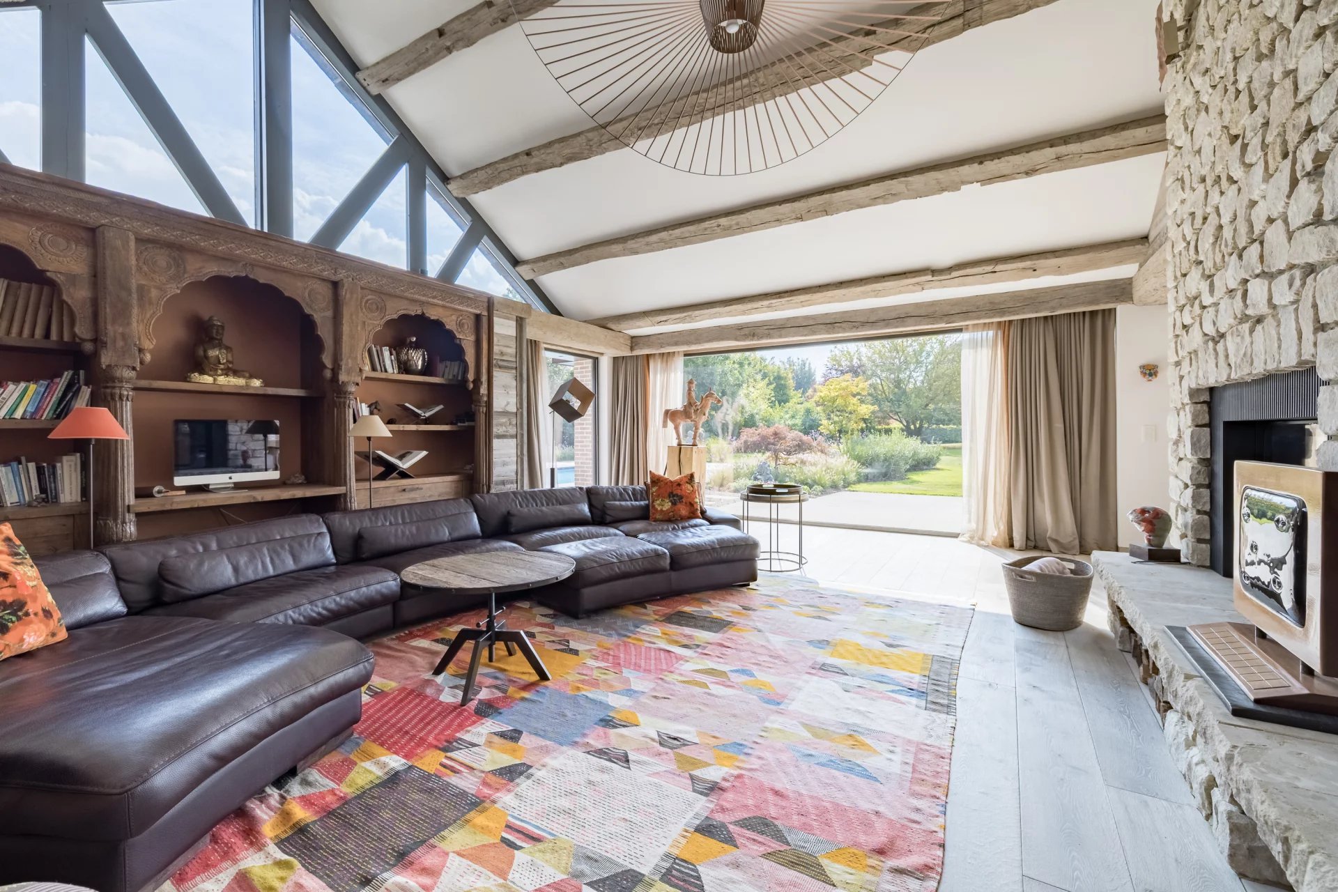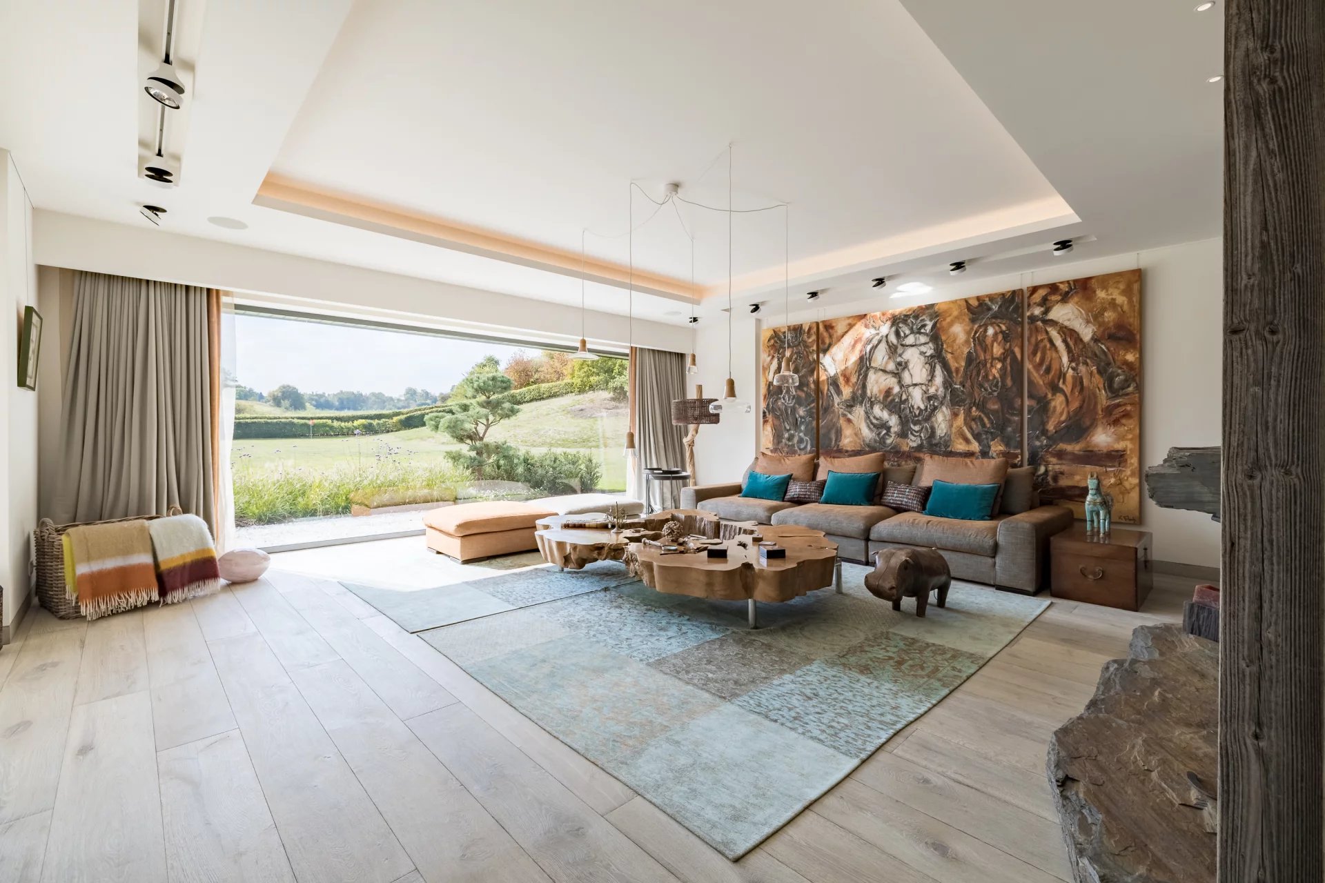 Située sur un domaine paysager de 1,4 hectare, cette propriété d’exception de style californien séduit par ses volumes généreux, sa luminosité omniprésente et son élégance contemporaine. Conçue avec une attention minutieuse portée aux moindres détails, elle incarne un art de vivre alliant confort, modernité et sérénité.rnDès l’entrée, les espaces de vie s’ouvrent harmonieusement sur l’extérieur, offrant une perspective continue vers les terrasses et le jardin avec vue panoramique. Le vaste salon, la salle à manger conviviale, la cuisine ultra-équipée avec arrière-cuisine, ainsi que le salon TV dédié à la détente composent un ensemble fluide et lumineux, parfaitement orienté.rnLa suite parentale de plain-pied constitue un véritable cocon de bien-être : elle comprend deux dressings, une salle d’eau privative, un sauna, un hammam et un bureau indépendant. À l’étage, quatre chambres supplémentaires, toutes pourvues de dressings et de salles de bains en suite, garantissent confort et intimité à chacun. Un appartement indépendant complète l’ensemble, idéal pour accueillir famille, invités ou personnel.rnÀ l’extérieur, les nombreuses terrasses aménagées et le pool house raffiné s’articulent autour de la piscine, créant un cadre idyllique pour la détente et la convivialité.rnLes installations équestres sont parfaitement intégrées dans leur environnement naturel et s’adressent aux passionnés comme aux professionnels : quatre boxes, deux salles de pansage, une scellerie, un solarium, deux paddocks, une piste extérieure de 70 x 30 mètres ainsi qu’un rond de longe.rnLe sous-sol offre également des prestations de standing, avec une cave à vins, des espaces de rangement généreux et fonctionnels.rnCôté technique, la propriété est dotée d’un équipement complet répondant aux standards les plus exigeants : domotique intégrale, pompe à chaleur, chaudière au mazout, panneaux photovoltaïques, ventilation double flux, chauffage au sol sur les deux niveaux.rnUn bien rare et raffiné, pensé dans les moindres détails, où chaque espace a été conçu pour conjuguer art de vivre, sérénité et performance énergétique.rnÀ seulement 25 minutes des aéroports de Bruxelles-Zaventem et de Charleroi, la propriété bénéficie également d’une proximité directe avec les grands axes routiers ainsi que les écoles internationales.