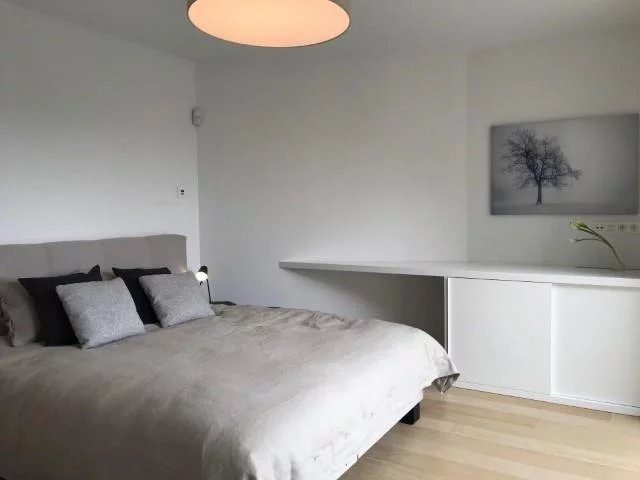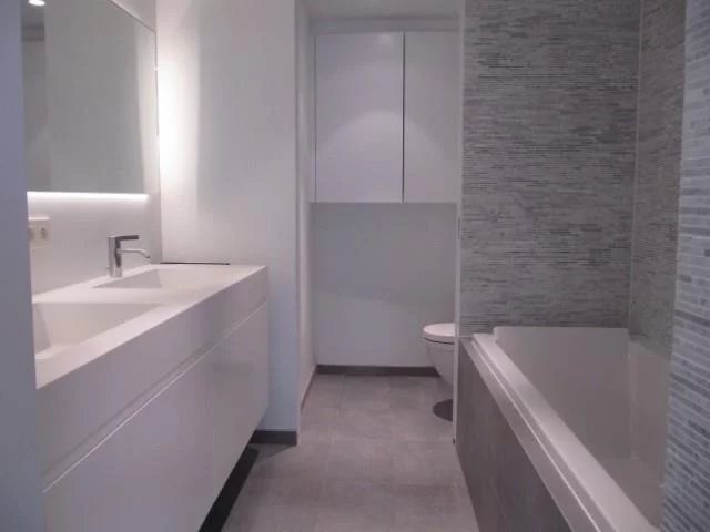 Situé à quelques mètres du rond point Montgomery, découvrez cet appartement 2 chambres de 145m2 (selon PEB).rnrnLe hall d'entrée, avec vestiaire, toilette invité et buanderie, vous mène au séjour disposant d'un zone salle à manger et d'une zone salon séparée par le cuisine avec ilot central. rnLe salon dispose d'un insert au gaz, de rangements intégrés et d'un accès à la terrasse arrière.rnrnL'appartement dispose de deux chambres, chacune avec dressing intégré et leur pièce d'eau avec toilette.rnrnL'appartement dispose d'une cave et de deux parking en supplément (+200€/mois pour les deux parking).rnrnPEB B+rnrnProvision de charge de 150€/mois pour l'entretien des communs.rnrnLibre dès le 1er juin.